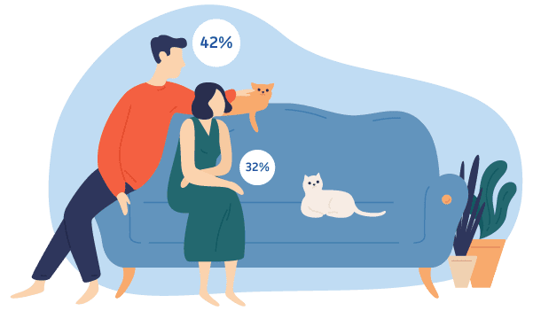 But it’s not just when our animals are unwell that we feel the need to stay at home with them. Six out of 10 pet owners told us they took time off work when they first brought their dog or cat home with one in seven taking more than a week.