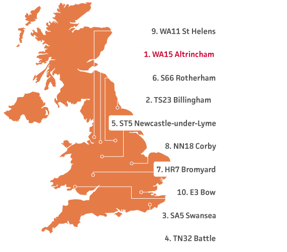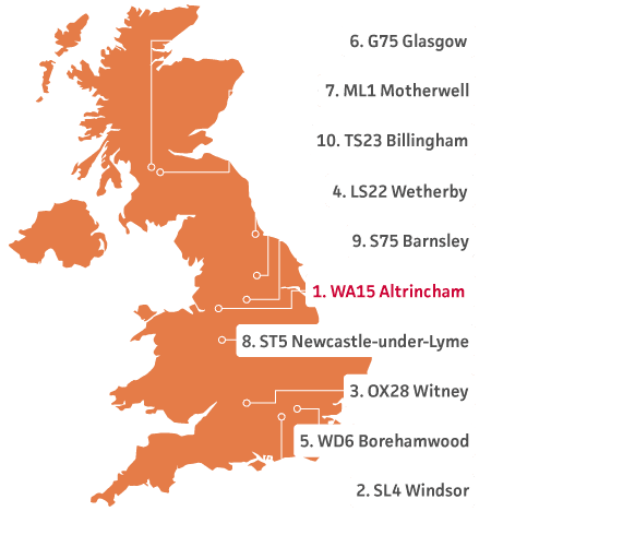 Top 10 postcode areas for cost of pet insurance claim
